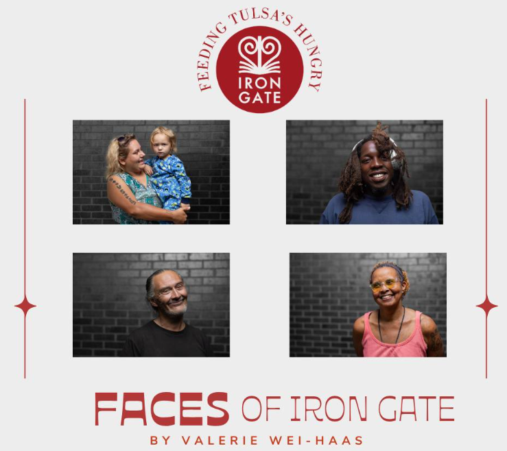 We invite you to join us for the gallery opening reception event celebrating this year’s Faces of Iron Gate on Thursday, April 16 from 5:30 to 7:30 pm at Trinity Episcopal Church (501 S. Cincinnati), the home of Iron Gate for more than 40 years. Drinks and hors d’ouvres will be served.